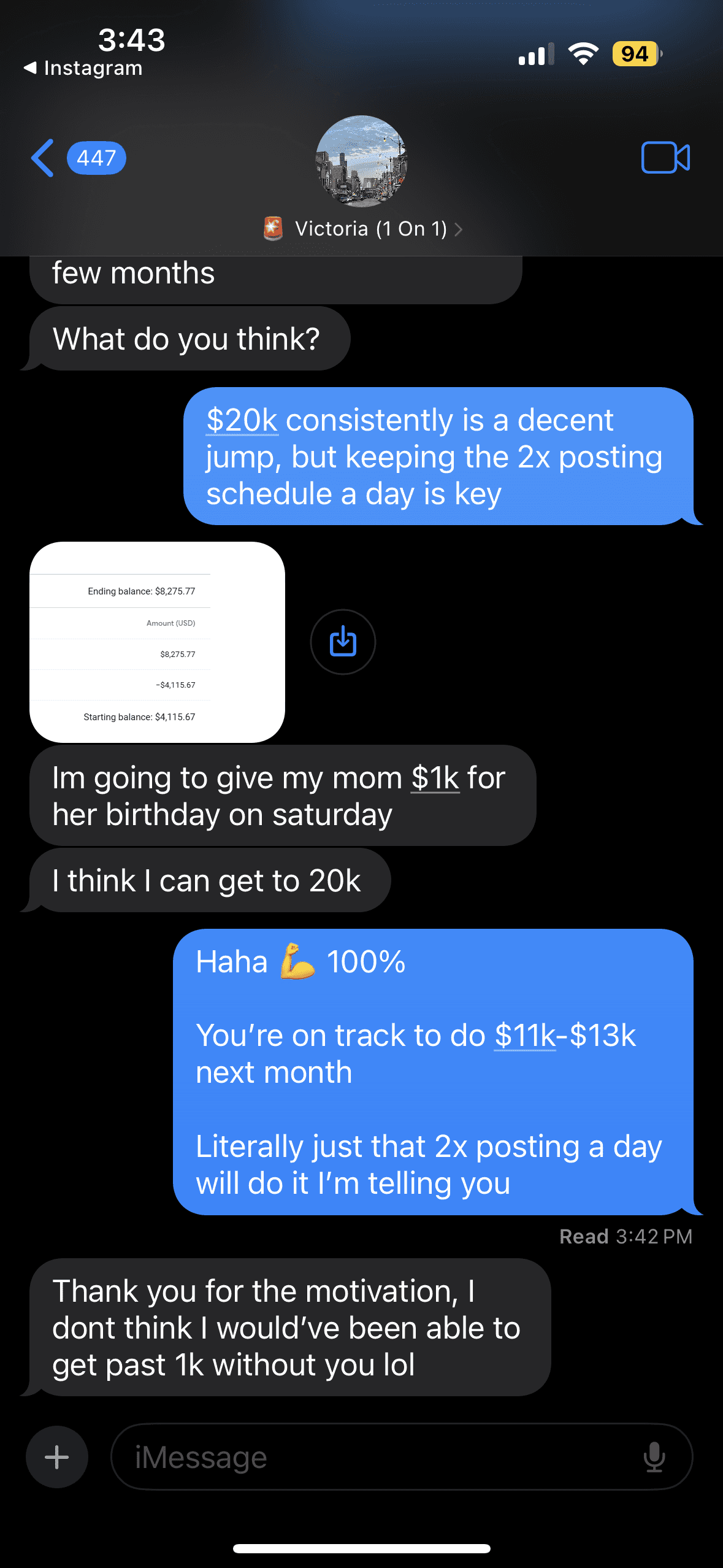 Victoria Made $8.3k in one month & gave her mom $1k for her birthday